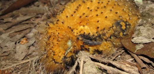 En ese camino, se encontraron con el nido de la especie y también con ejemplares de una oruga venenosa de la familia “Megalopygidae” que era exacta en coloración y muy parecida en tamaño al polluelo.