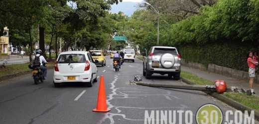 Ocurrió la tarde de este lunes 26 de enero. Según testigos, una mujer conducía una Toyota Prado por la Circular 1 con la carrera 70, en inmediaciones de la UPB, cuando se le atravesó un motociclista. Al parecer, la mujer, asustada al creer que la iban a robar, perdió el control del vehículo y se chocó contra un poste al que tiró al suelo.