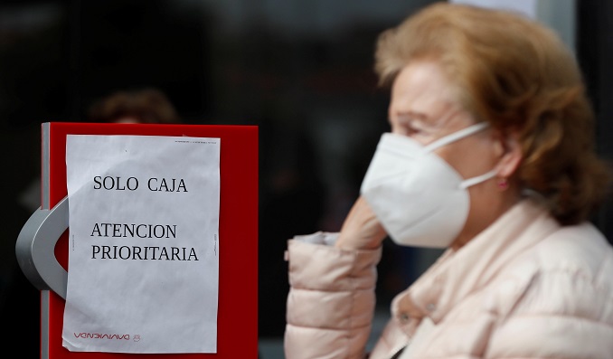 Una mujer hace fila para entrar a un banco en la localidad de Usaquén – EFE/Carlos Ortega