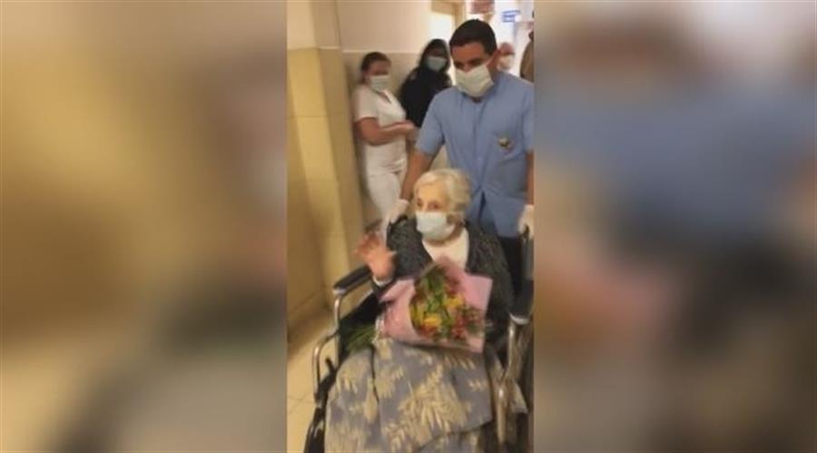 La anciana salió del hospital entre aplausos de los sanitarios que la atendieron, según se pudo ver en un vídeo publicado en Facebook por la Fuerza Aérea- de quien depende el hospital- el pasado lunes.