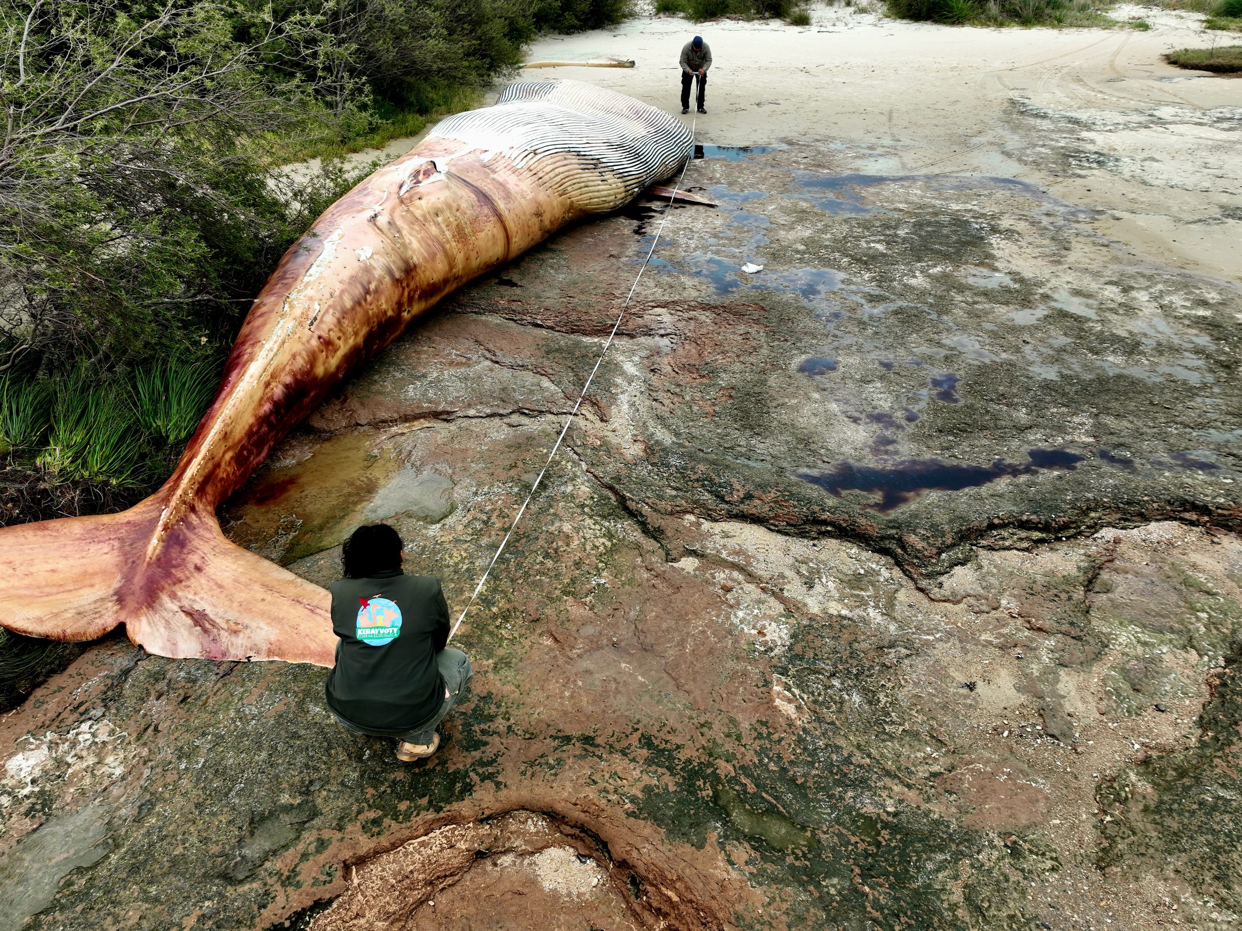 Según el responsable de la reserva natural, destinada a la preservación y conservación de animales autóctonos y exóticos, ubicada a unos cuatro kilómetros de Artilleros, veterinarios consultados estimaron que se trata de una ballena azul.