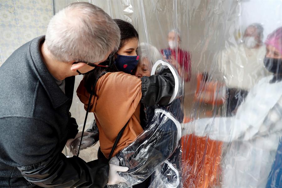 Pasaron más de cien días desde que María Paula Moraes abrazó por última vez a su padre, que vive en una residencia de ancianos en la ciudad brasileña de Sao Paulo. Hoy, pese al avance de la pandemia del coronavirus en Brasil, pudieron acercarse de nuevo a través de una “cortina de abrazos”.