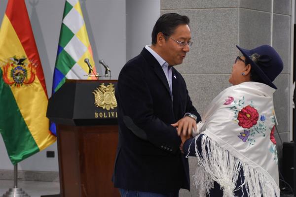 Arce agradeció al canciller saliente, Rogelio Mayta, quien dejó el puesto hace unas semanas para asumir como nuevo magistrado de Bolivia en el Tribunal de Justicia de la Comunidad Andina (TJCAN).