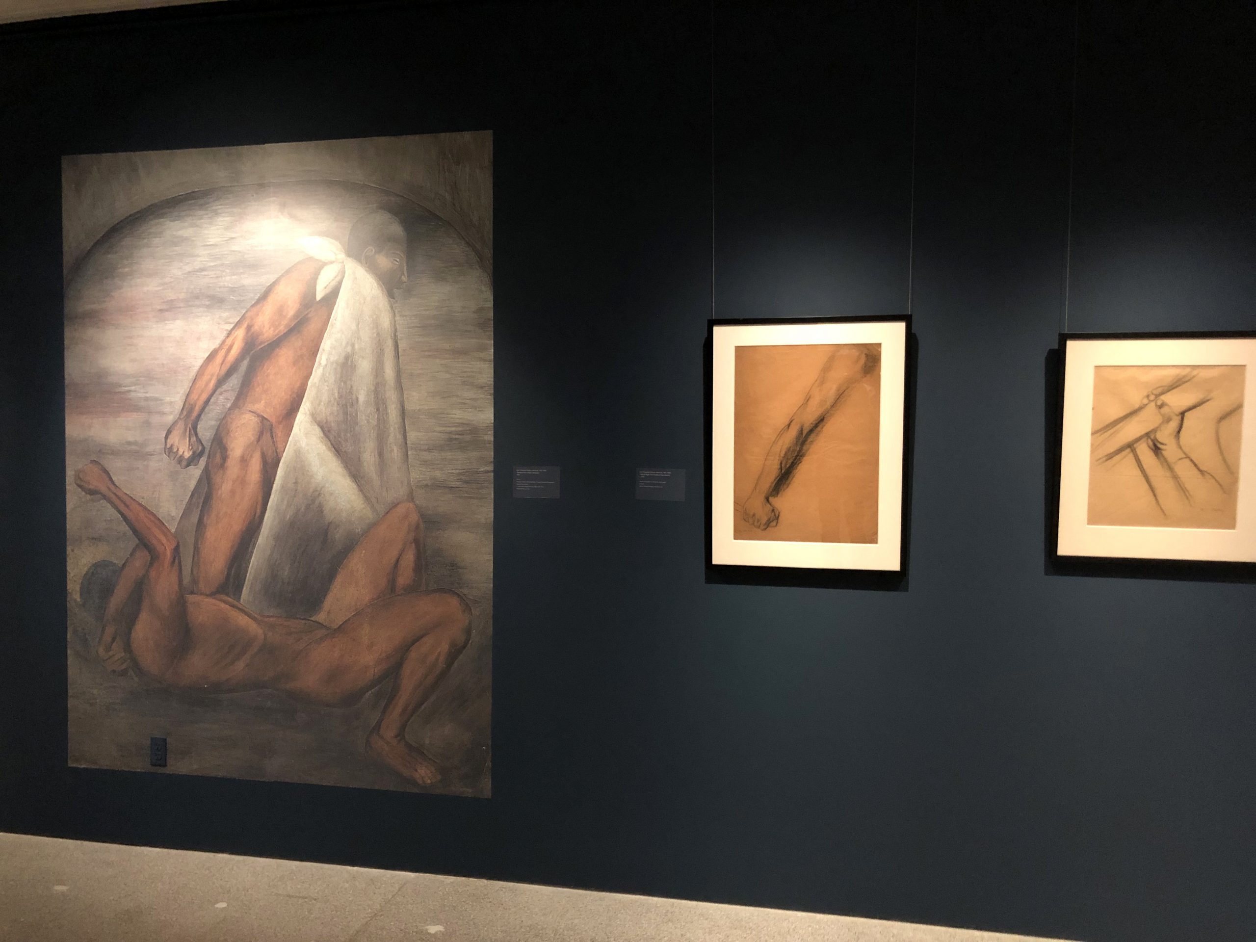 Los bocetos se muestran al lado de reproducciones de sus famosos murales, adaptados al espacio de la Hispanic Society, algunos de ellos en México y otros en distintas instituciones de Estados Unidos, un país en el que Orozco probó fortuna al menos en dos ocasiones, para regresar consagrado a su país.