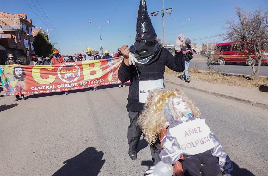 El Alto, la segunda mayor ciudad del país con cerca de un millón de habitantes, fue escenario de una marcha con pancartas de la COB, de organizaciones de mineros llegadas de otras partes del país y de distintos colectivos, con un ataúd de cartón y un muñeco representando a la presidenta interina de Bolivia, Jeanine Áñez.