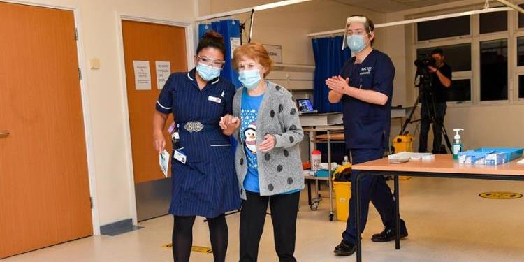 Una mujer de 90 años y una enfermera filipina han sido este martes las protagonistas del llamado día “V”, el comienzo de la inmunización contra la covid-19 en el Reino Unido con la vacuna desarrollada por Pfizer y BioNTech.