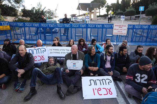 Los movilizados bloquearon los accesos al recinto parlamentario exigiendo "elecciones ahora", y acabaron siendo desalojados por agentes de la Policía israelí, que arrestaron a uno de ellos, según medios locales.