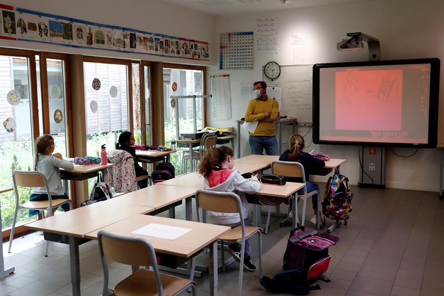 La vuelta al cole en Francia tras el confinamiento ha comenzado para los más pequeños, que se han encontrado con sus clases medio vacías no sólo por las estrictas medidas de distancia social, sino por la decisión de muchos padres de dejar a sus hijos en casa.