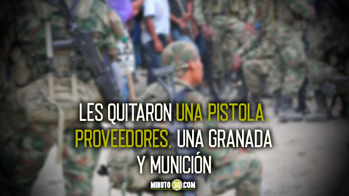 Según la institución, en el enfrentamiento contra esta estructura dedicada al servicio del narcotráfico se rindieron cinco sujetos, entre estos una menor de edad, a los que se les incautó una pistola, dos proveedores, cuatro computadoras, una granada de mano, munición, elementos como brazaletes y botas de combate.