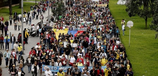 Unos 1.500 padres y maestros se concentraron hoy en la céntrica Plaza de Bolívar, en Bogotá, para mostrar su respaldo a la huelga que mantienen desde hace casi dos semanas unos 300.000 educadores públicos de primaria y secundaria en Colombia. Alrededor del mediodía y bajo numerosos paraguas para cobijarse del implacable sol, los manifestantes respaldaron […]