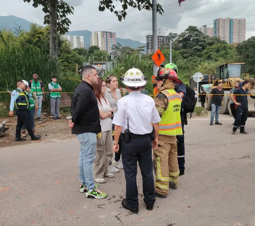 Unidades del Cuerpo de Bomberos de La Estrella, Policía de Tránsito y personal de atención prehospitalaria trabajan en el área para rescatar a posibles personas atrapadas y atender a los heridos.