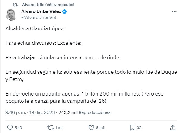 — Claudia López Hernández (@ClaudiaLopez) December 20, 2023