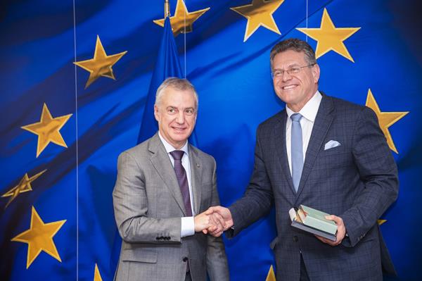 El lehendakari se ha reunido también con el vicepresidente de Pacto Verde, Relaciones Institucionales y Prospectiva de la Comisión Europea, Maros Sefcovic, a quien ha explicado las claves de la visión estratégica Euskadi 2040.