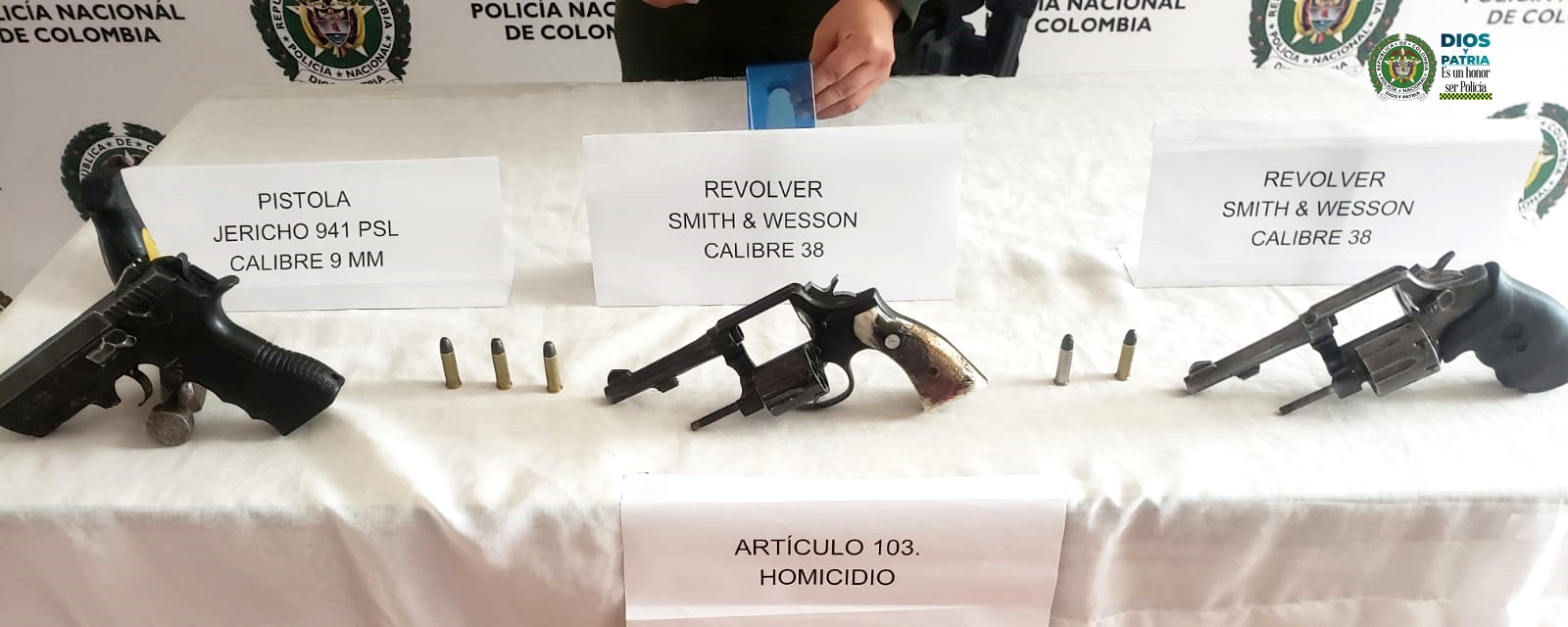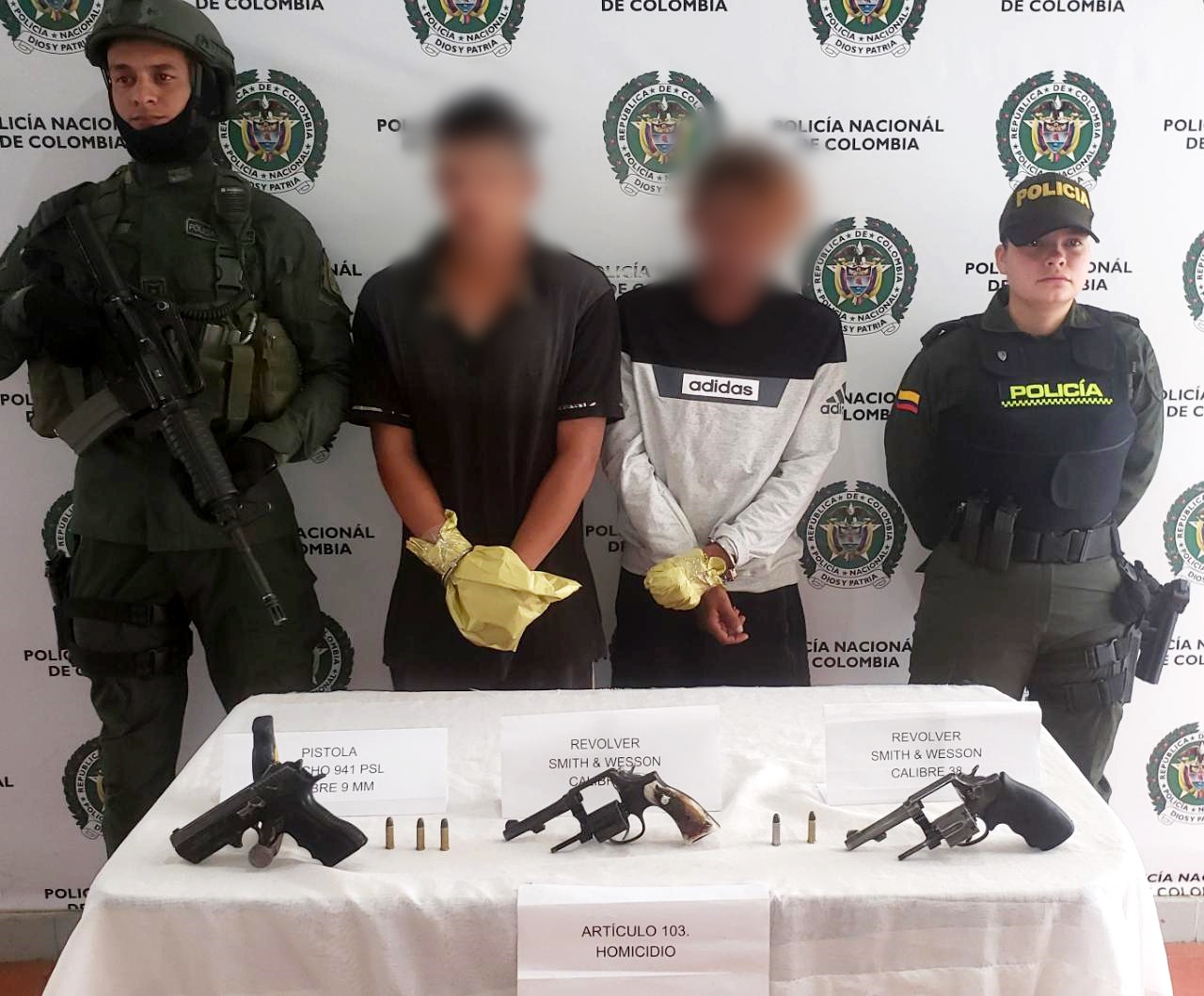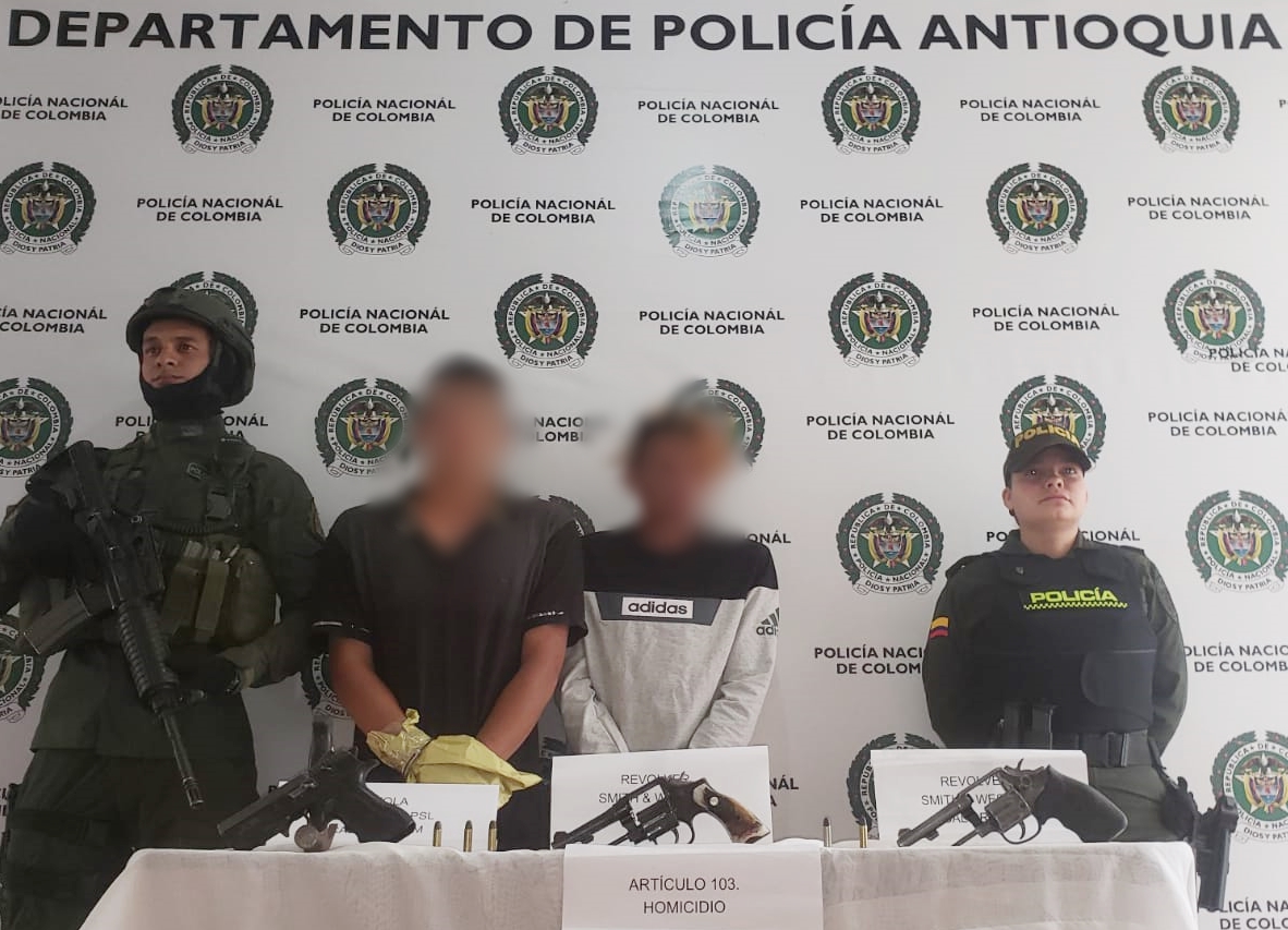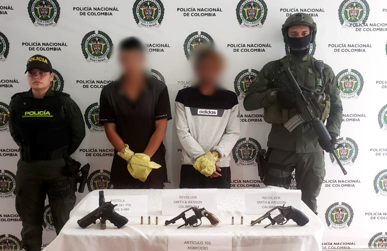 Sobre la captura la Policía reveló, “al momento de la captura estos dos hombres fueron sorprendidos con un Arma de fuego tipo revolver y dos armas de fuego tipo pistola, razón por la cual fueron puestos a disposición de la Fiscalía General de la Nación por los delitos de homicidio, Tráfico, fabricación y porte de armas de fuego”.