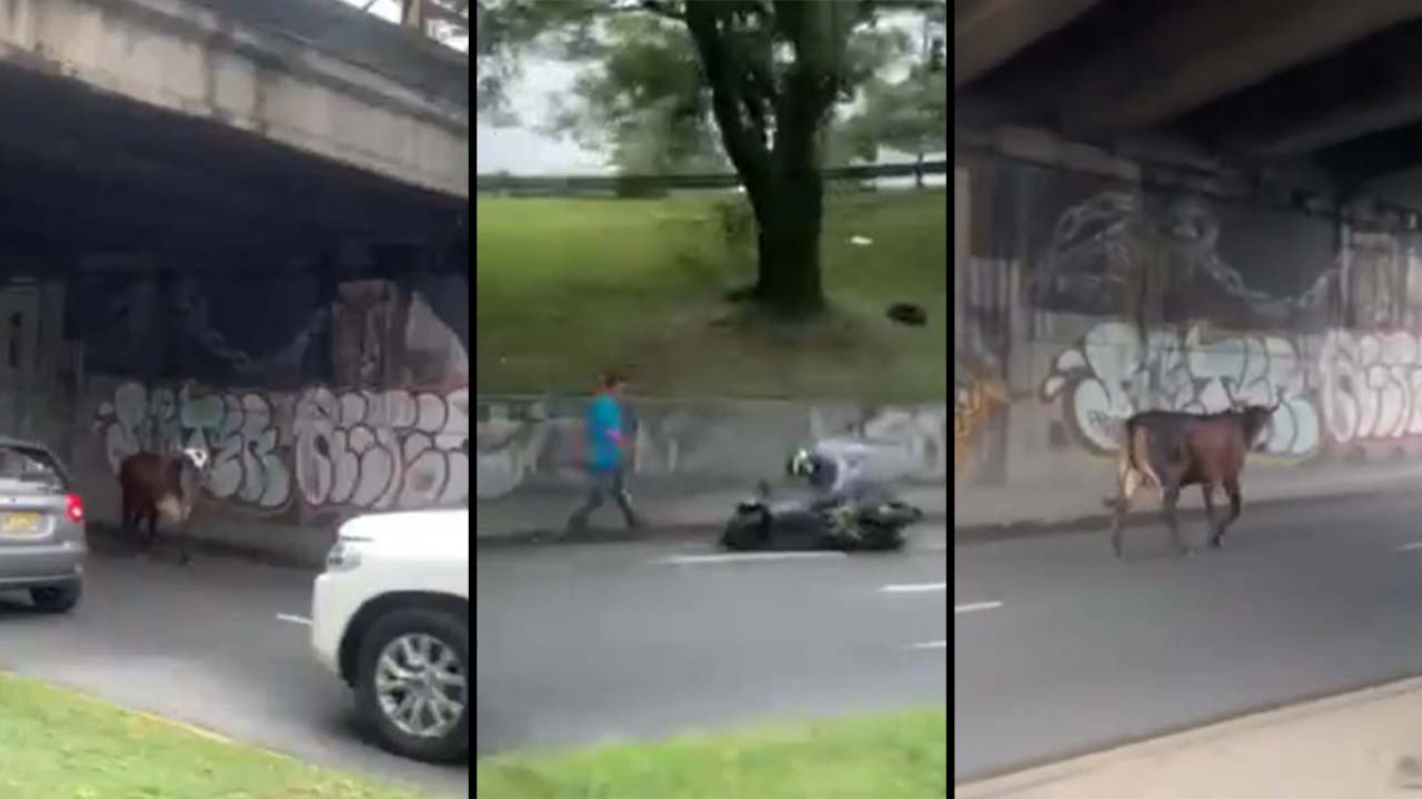 Cómo se puede observar en el video un motociclista se fue al suelo, mientras esta vaca corría por la calle. Según la persona que hizo el reporte, al parecer la vaca lo empujó.