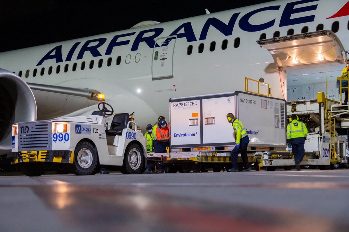 Las vacunas llegaron al Aeropuerto El Dorado de Bogotá, a las 7:30 p.m., a bordo del vuelo AF428 de Air France, procedente de París. Tras cumplir el proceso de nacionalización, los biológicos ingresaron a la bodega del Ministerio de Salud en la Zona Franca.