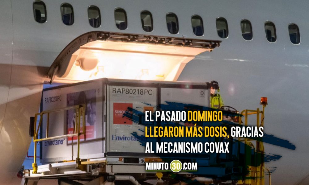 Este domingo, Colombia recibió 1’000.000 de vacunas de la farmacéutica china Sinovac, adquiridas a través del mecanismo Covax, con las cuales el país llega a 13’299.364 dosis, para seguir adelante con el Plan Nacional de Vacunación contra el covid-19.