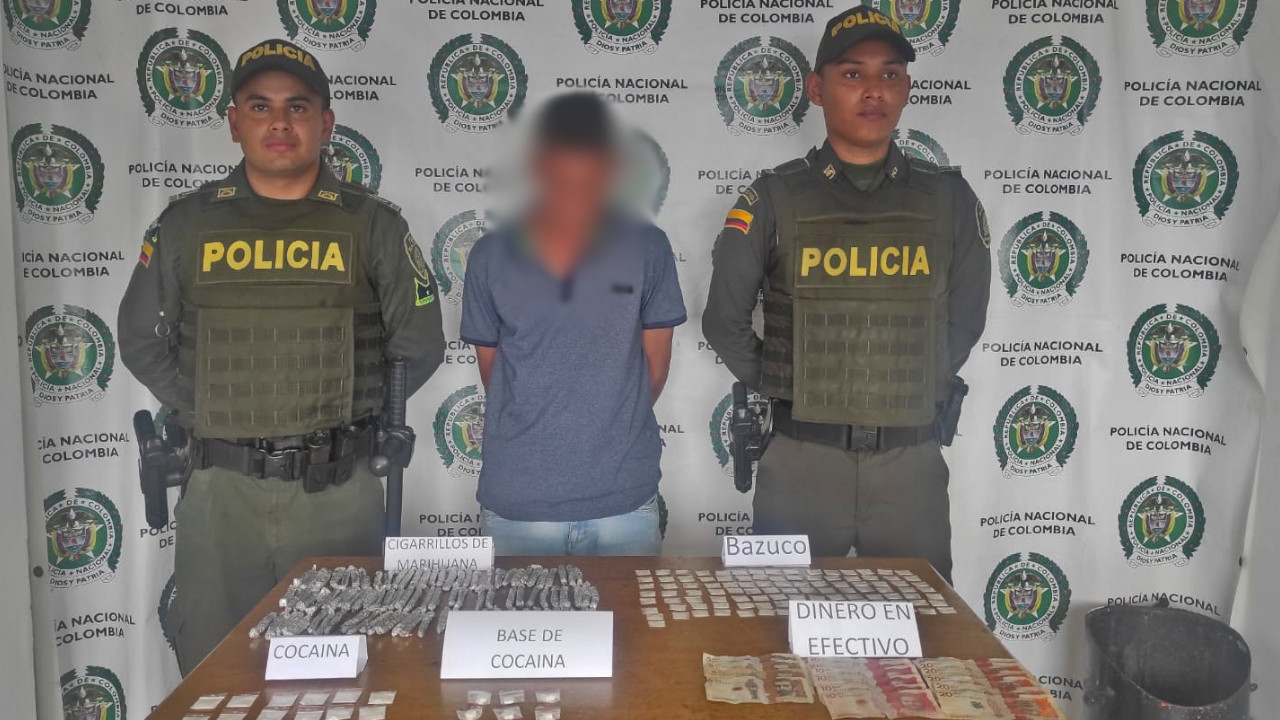 A este sujeto le incautaron 53 gramos de bazuco, 12 gramos de clorhidrato de cocaína, 06 gramos de base de coca y 35 gramos de marihuana.
