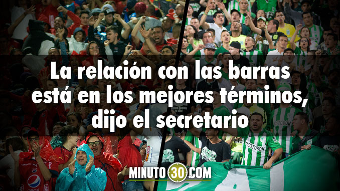 Minuto30.com- Mateo González, secretario (e) de Seguridad de Medellín, aseguró que la relación entre la Administración y las barras oficiales tanto del Atlético Nacional como del Deportivo Independiente Medellín, está en los mejores términos y aseguró que hechos como los ocurridos el pasado miércoles en San Antonio donde al parecer una pelea entre hinchas se saldó con un seguidor del Atlético Nacional muerto, son hechos aislados que no obedecen y nada tienen que ver con el fútbol.