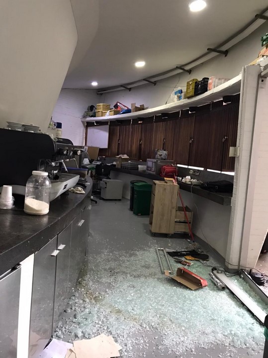 Según registros fotográficos, en el lugar se hallaron equipos en pérdida, daños considerables en el restaurante, saqueos en la tienda en la que se ofrecen productos de emprendedores locales, robo de libros y destrucción en los vidrios de las instalaciones.