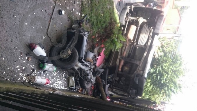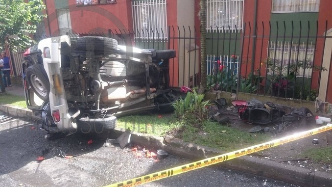 También arroyó una motocicleta estacionada en la vía, vehículo que se llevó la peor parte según el reporte ciudadano.