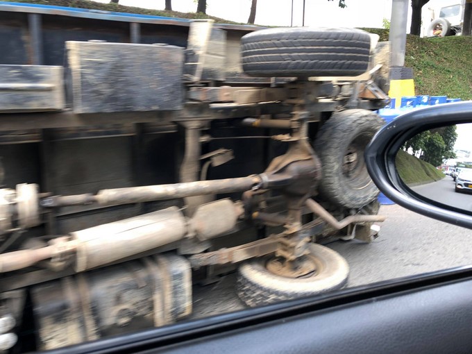 Un vehículo pequeño de transporte pesado se volcó este mediodía en la avenida Regional a la altura de la estación Aguacatala del Metro.