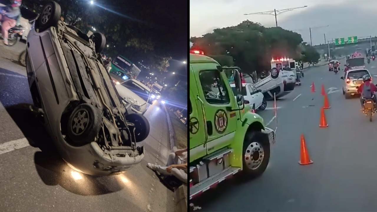 VIDEO. ¡Con las llantas para arriba! Así quedó un vehículo cerca a la Terminal del Norte
