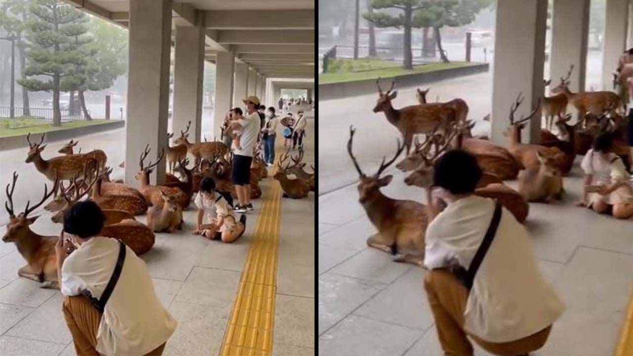 En Nara, Japón, ocurrió un hecho que enterneció a los internautas. Se trató de un video en donde varios ciudadanos y ciervos se resguardaron de un aguacero.