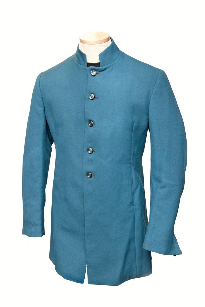 De color azul verdoso, la chaqueta sigue el estilo de las utilizadas en la portada del octavo álbum del mítico grupo, “Sgt. Pepper’s Lonely Hearts Club Band” (1967), con cuello mandarín y una ligera campana en las mangas.