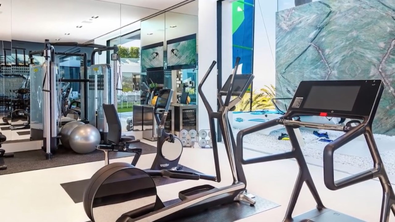 Medios internacionales explican que la vivienda de 380 metros cuadrados y un estilo minimalista cuenta con un completísimo estudio de grabación, un gimnasio totalmente equipado, una pista de tenis y una exclusiva sala de cine.