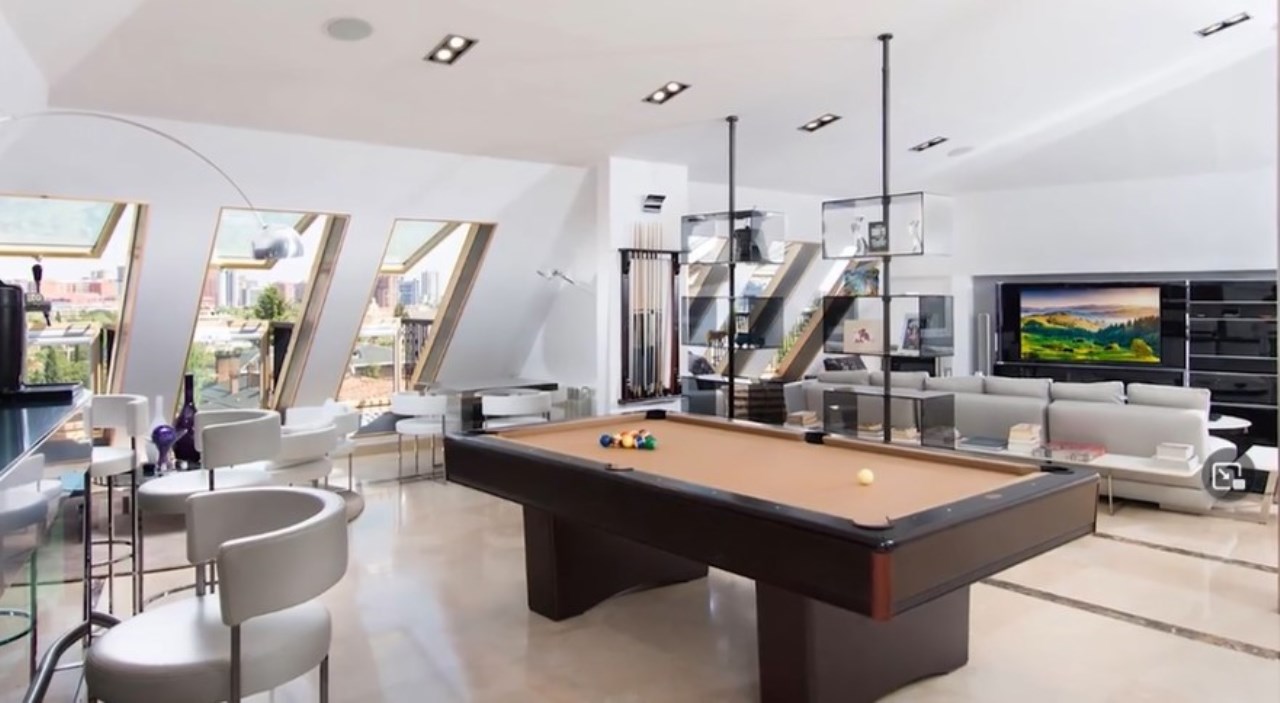 Medios internacionales explican que la vivienda de 380 metros cuadrados y un estilo minimalista cuenta con un completísimo estudio de grabación, un gimnasio totalmente equipado, una pista de tenis y una exclusiva sala de cine.