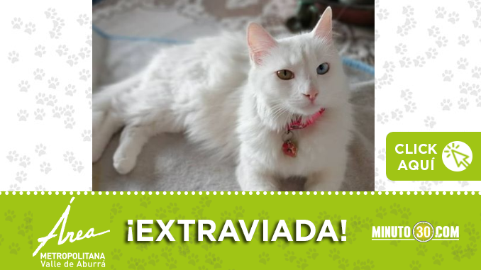 ‘Venus’ se perdió en Envigado el pasado jueves 6 de junio. Es blanca, con un ojo azul y el otro verde. En el momento de extraviarse llevaba un collar rosado con su placa de huella rosada. Si usted la ha visto, puede comunicarse al teléfono 3122504620. ¡Comparte!