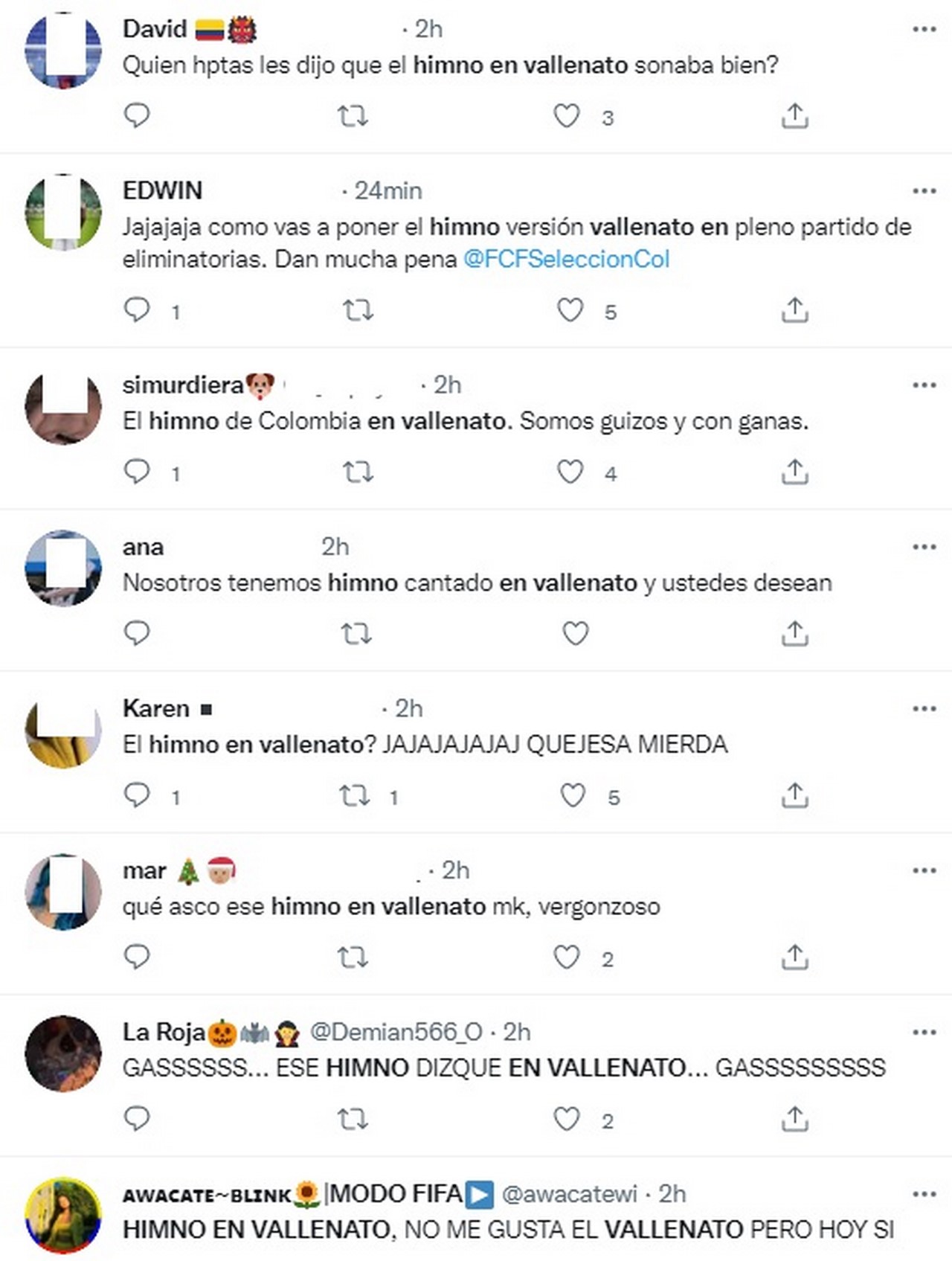 La versión del himno de Colombia cantada al inicio del partido ante Paraguay fue rechazada por cientos de personas a través de Twitter.
