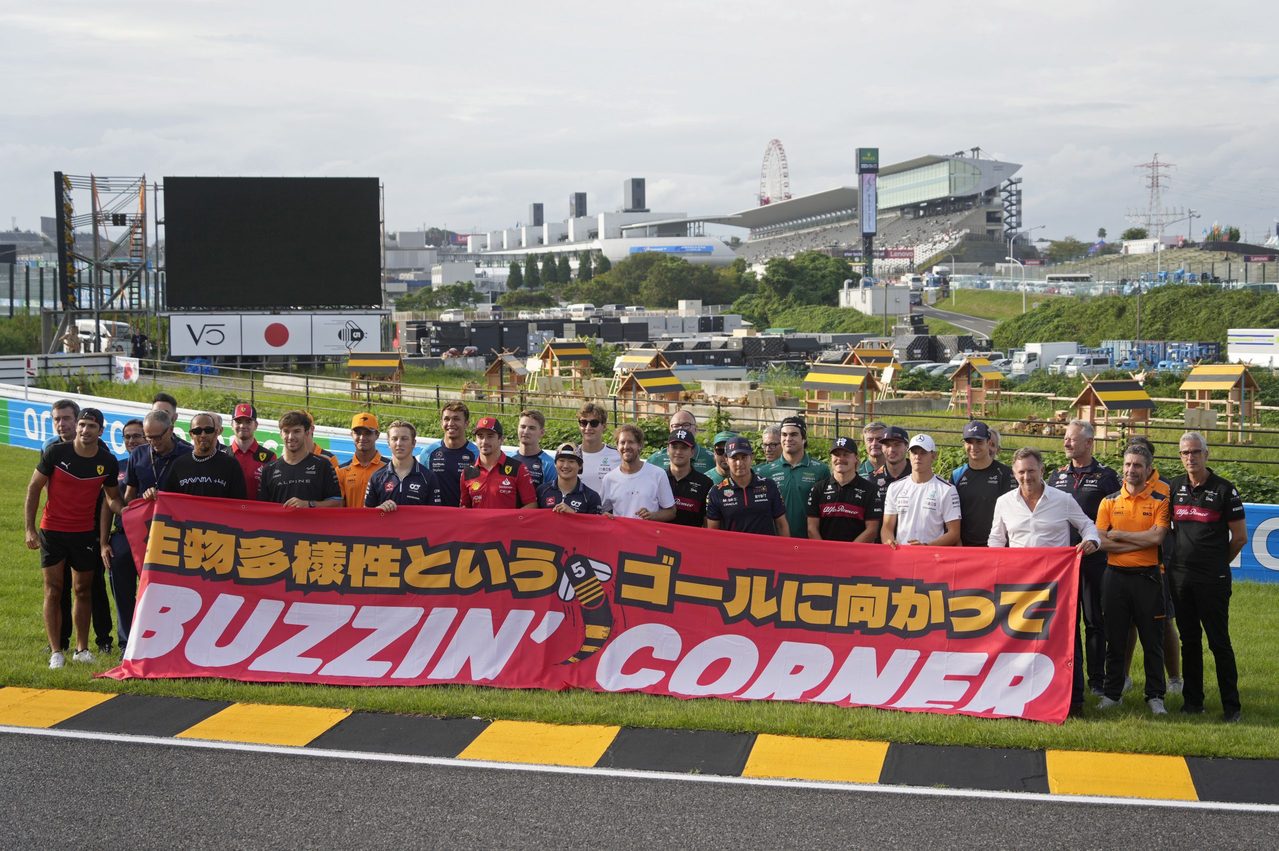 Además de colocar once colmenas artificiales para las abejas, los pianos de la curva 2 de Suzuka han sido pintados a rayas negras y amarillas, como parte de la iniciativa del proyecto "Buzzin' Corner" con el germano como cara visible y que pretende luchar a favor del medioambiente y la diversidad.