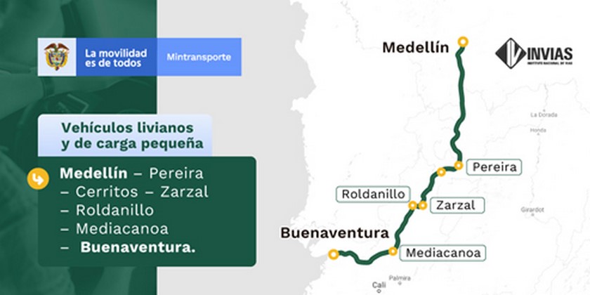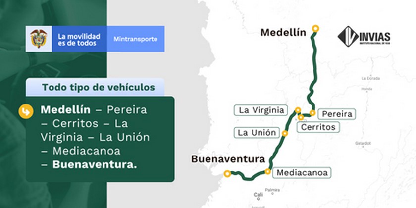 Medellín – Pereira – Cerritos – La Virginia – La Unión – Mediacanoa – Buenaventura