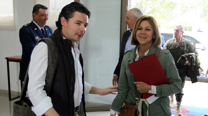 La ministra de Defensa de España, María Dolores de Cospedal (d), es recibida por el viceministro de defensa de Colombia, Anibal Fernández de Soto (i),