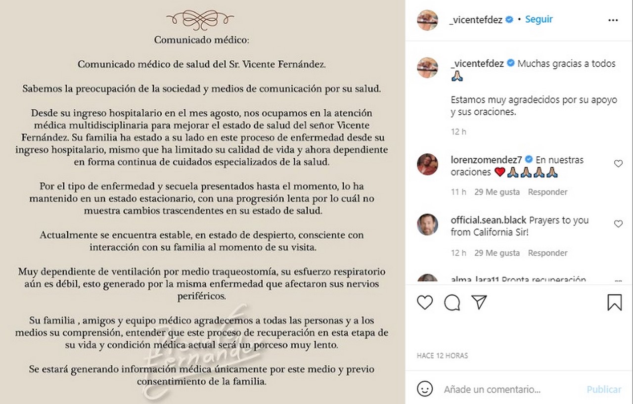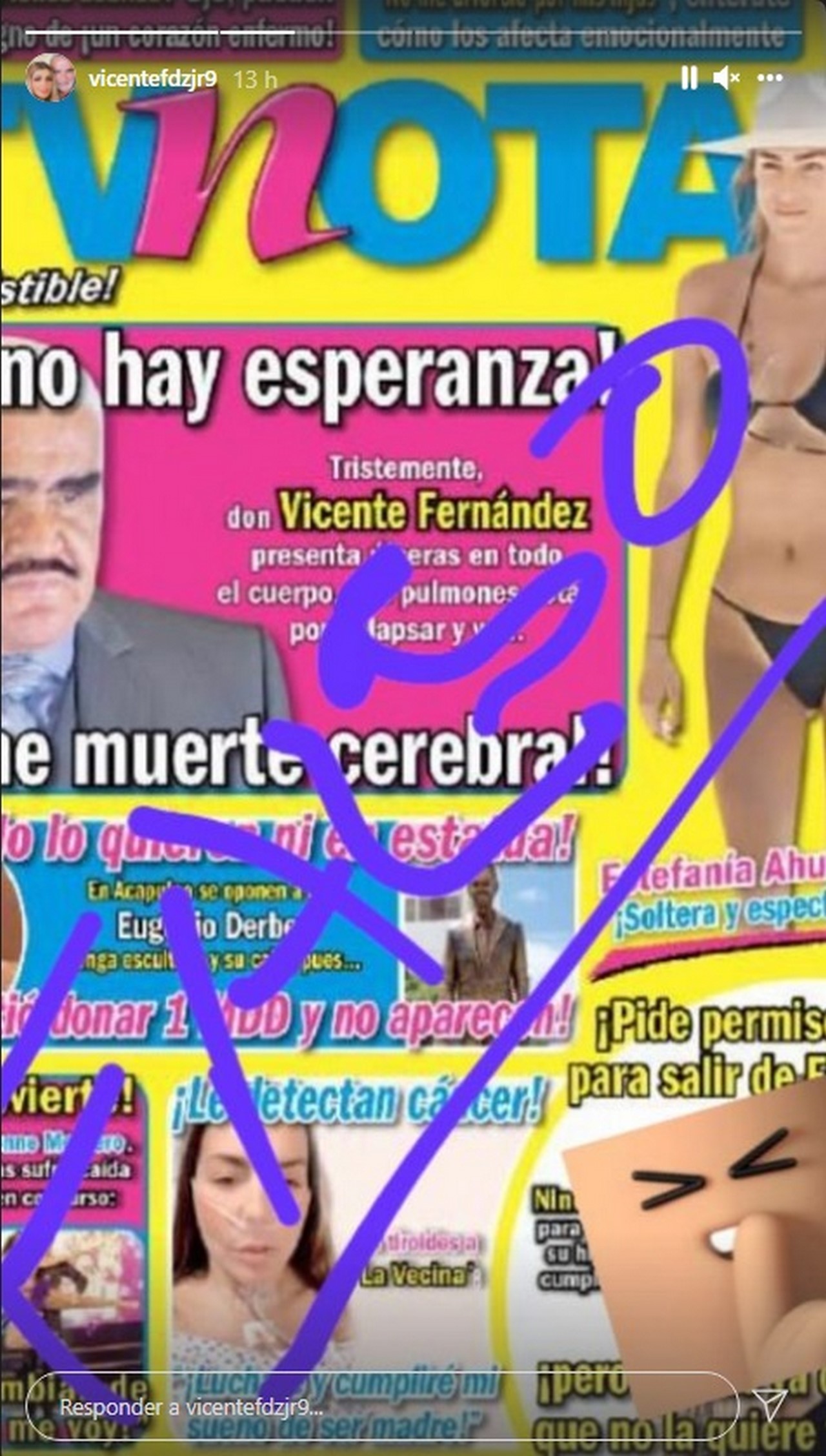 Luego de que se viralizara dicha noticia, Vicente Fernández Jr. se pronunció en su perfil de Instagram con un contundente mensaje y desmintió dicha noticia.