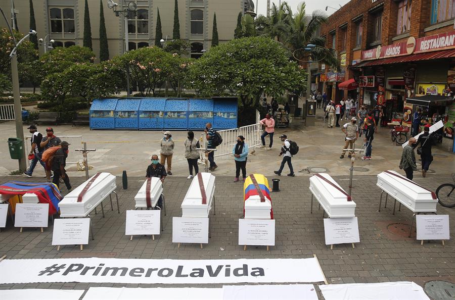 La espiral de violencia comenzó el pasado 11 de agosto con la matanza en un barrio de la periferia de la ciudad de Cali (suroeste) de cinco adolescentes de entre 14 y 15 años de edad, y las víctimas más recientes fueron tres jóvenes, uno de ellos menor de edad, tiroteados el domingo en Venecia, un pueblo del departamento de Antioquia.
