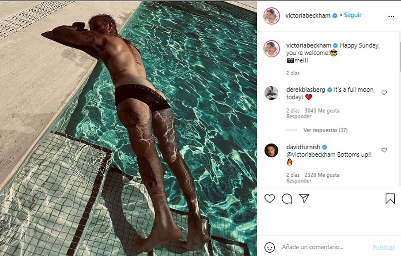 Victoria Beckham compartió foto de su esposo David Beckham pelando nalga, lo que subió la temperatura en Instagram, el exfutbolista estaba tomando el sol en su casa en Miami.