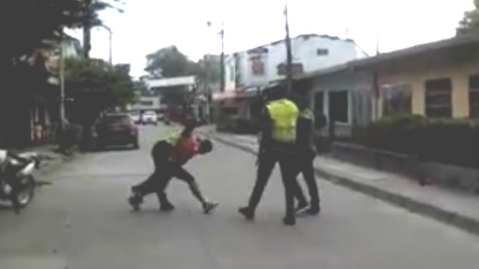 Minuto30.com- En video quedó registrada una pelea entre dos sujetos y dos auxiliares de la Policía en hechos que, aunque no se detalló cuándo sucedieron, se conoció que tuvieron lugar en el municipio de Apartadó, Urabá.