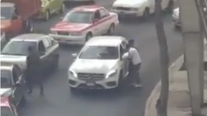 Dos presuntos atracadores aprovecharon el momento de trafico lento para delinquir, uno de ellos intentó romper a puños la ventana de un vehículo, al no lograrlo prefirió rendirse del robo que pensaba cometer al interior del carro. Los hechos se registraron en una vía de la capital de México. Un transeúnte que se encontraba en […]