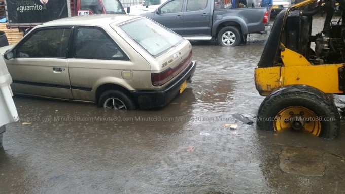 Los ciudadanos reportaron las lluvias desde diferentes lugares. Uno de ellos se detuvo en el cruce de la carrera 65, a la altura de la estación Suramericana del Metro.