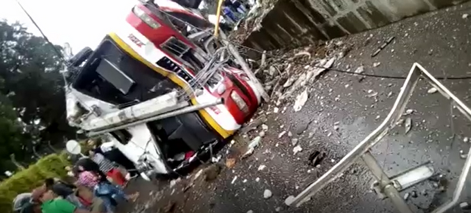 Según los testigos que reportaron a Minuto30 varias personas resultaron heridas luego de que un bus del municipio de San Vicente se volcara y pasara al carril contrario.