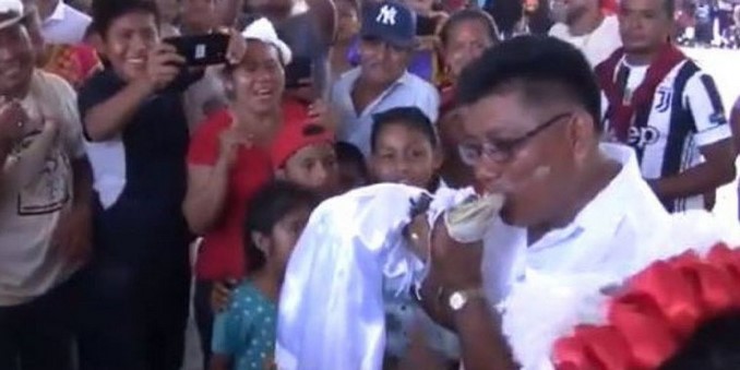 Virgilio Fuentes, alcalde de San Pedro Huamelula, en México, contrajo matrimonio con un caimán hembra todo como parte de una tradición del pueblo que busca atraer abundancia y grandes cosechas.