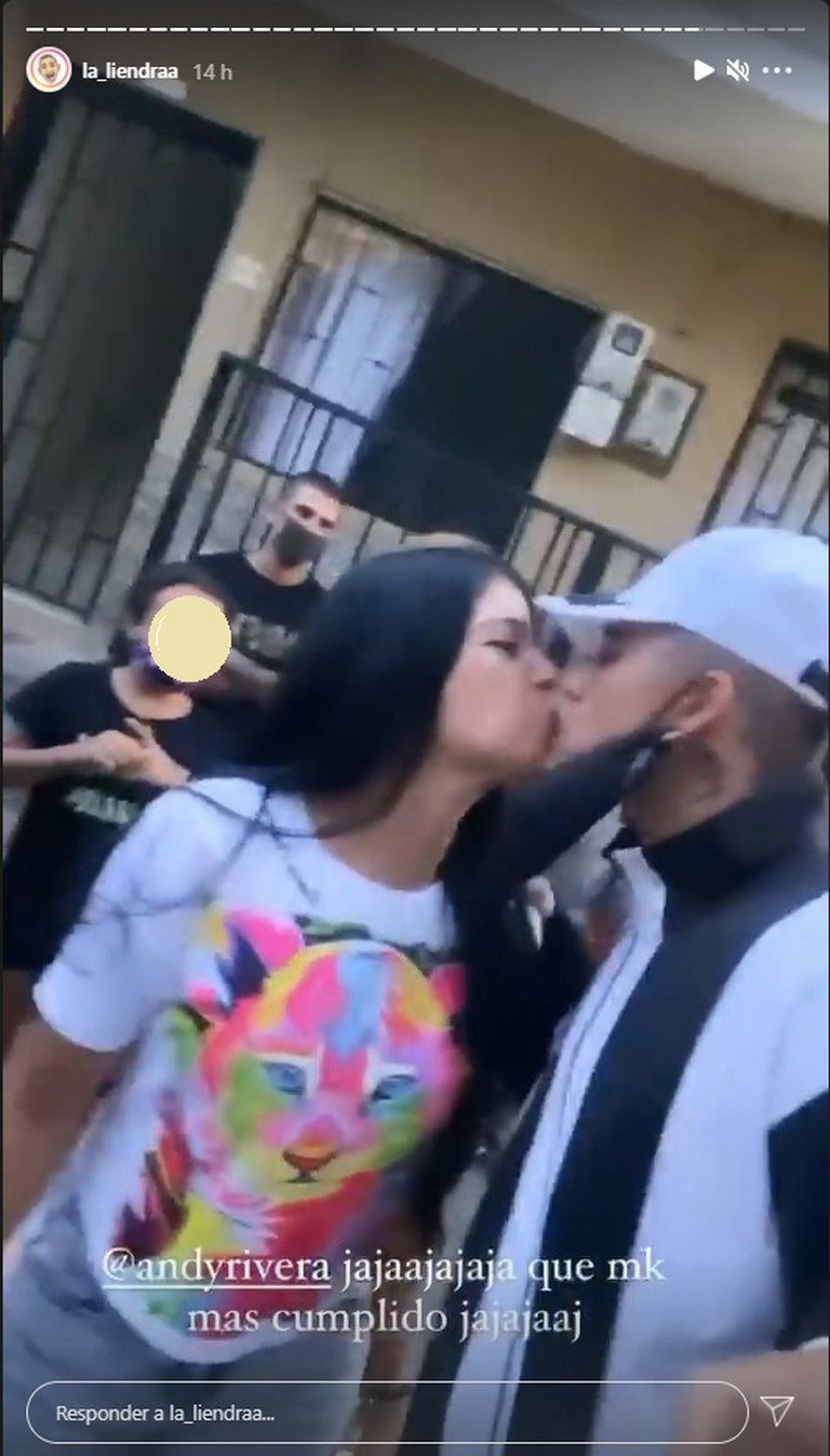 “Lo reto a que le dé un pico a ella de chispún”, dijo ‘La Liendra’ en el video, por lo que Andy se acercó a la seguidora y le pido beso fugaz en la boca. En el video se ven algunas personas grabando el hecho sin tapabocas ni el distanciamiento social.