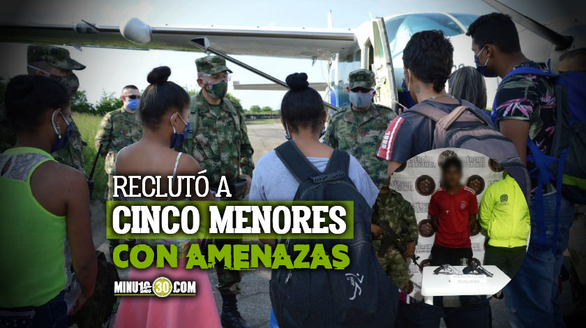 Según la institución, la operación tuvo lugar en la vereda Los Aguacates en zona rural del municipio de El Bagre, donde los soldados resguardaron a los menores de edad y dieron captura a ‘Jordan’, quien los reclutó de manera ilegal a través de amenazas a las familias de los menores, engaños con falsas promesas de dinero, aparatos tecnológicos y un mejor estilo de vida.
