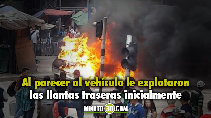 Minuto30.com- Un vehículo ardió en llamas en El Centro de Medellín, sobre Ayacucho, luego de que al parecer le explotaran las llantas traseras, según expresaron mediante reporte ciudadano a Minuto30.com. La emergencia fue atendida por Bomberos Medellín.