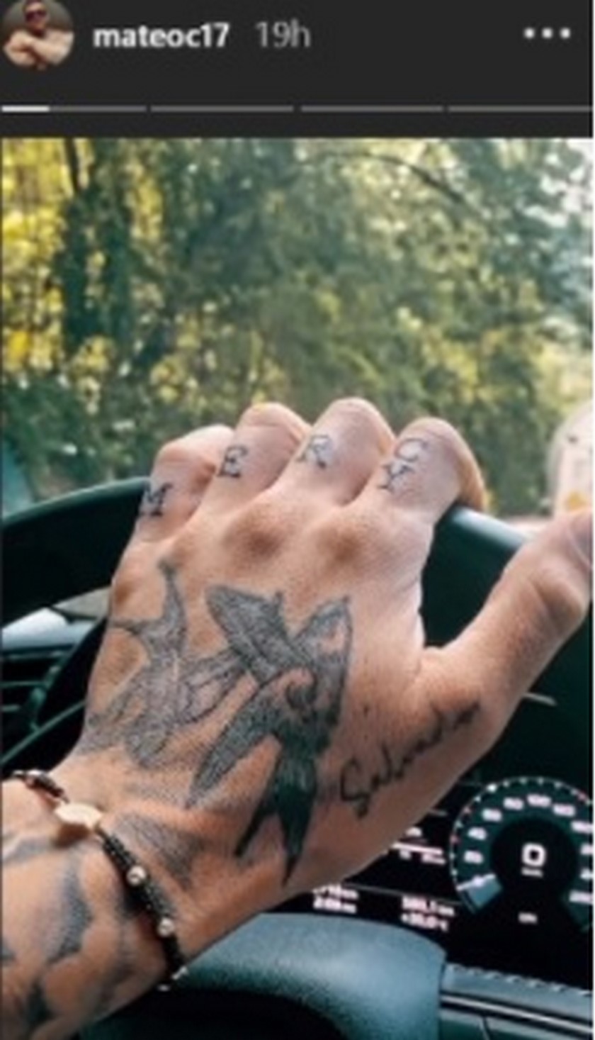 A través de sus estados de Instagram, Mateo Carvajal mostró que estaba en una nueva sesión de tatuajes donde borró el que decía Meli.