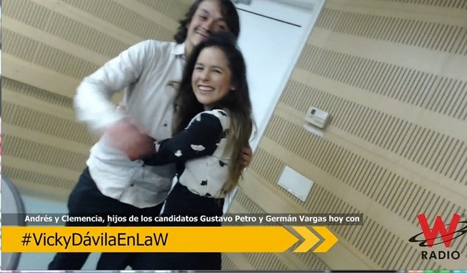 En una entrevista para W Radio, Clemencia Vargas, hija de Vargas Lleras y toda una experta en el baile, le enseñó al hijo de Petro, Andrés Petro, el paso oficial de la campaña de su padre, en una entrevista para W Radio.
