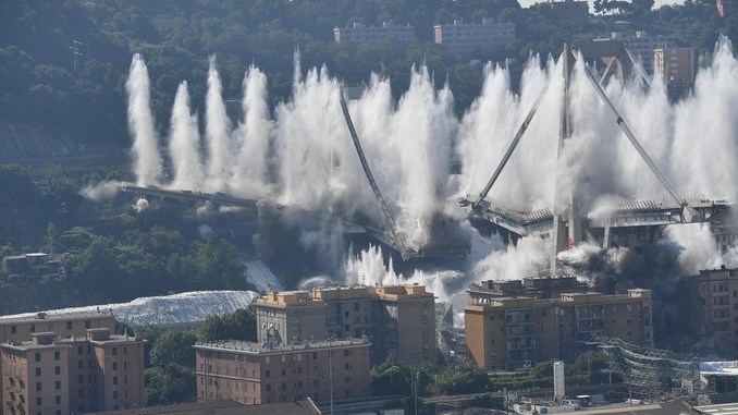 El viernes 28 de junio se llevó a cabo la demolición controlada de los dos principales pilares que quedaban del puente Morandi de Génova, en Italia, el cual dejó 43 personas muertas tras colapsar parcialmente en agosto del 2018.